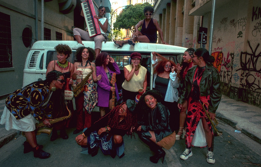 Instrumentistas: Larissa Oliveira (trompete), Stela Nesrine (sax alto), Ana Góes (sax tenor), Mariana Oliveira (sax barítono), Amanda dos Anjos (trombone), Anacruse (teclado/synth/Rhodes), Keith Félix (baixo), Jasper Okan (guitarra), Pri Hilário (bateria), Afroju Zambeleua e Sthe Araujo (percussão), Rosa Couto (xequerê e voz).