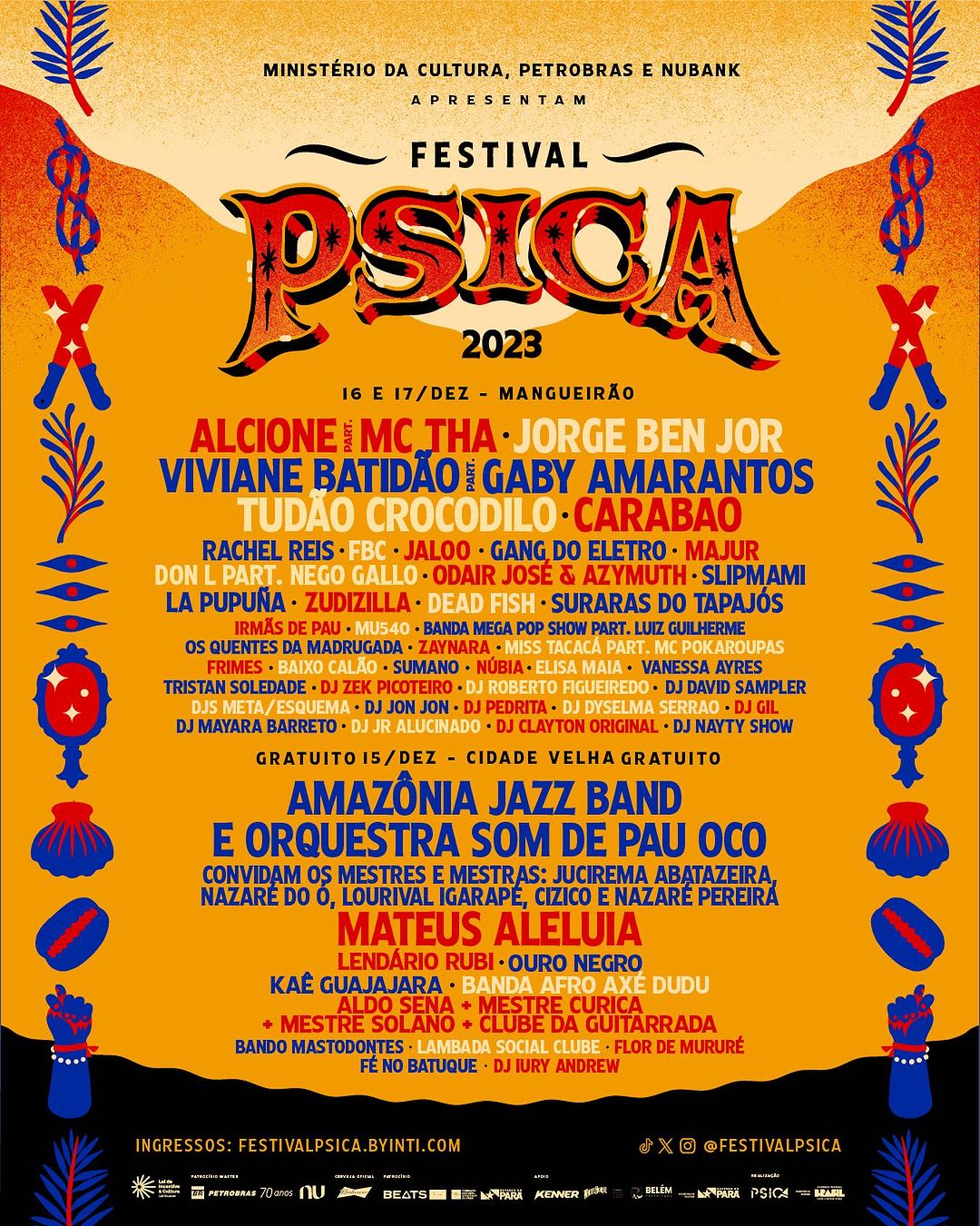 Pela primeira vez ocupando os gramados do Mangueirão, o Psica vai celebrar a cultura periférica com grandes atrações da cultura preta da Amazônia e do Brasil. Jorge Ben Jor, Alcione com participação de Mc Tha, Viviane Batidão com participação de Gaby Amarantos, as aparelhagens Tudão Crocodilo e Búfalo do Marajó são estrelas confirmadas nos dois dias pagos do evento. Também dispostos em quatro palcos, dois deles simultâneos, novos nomes da música nacional completam o lineup: FBC, Rachel Reis, Jaloo, Gang do Eletro, Majur, Don L com participação de Nego Gallo, Odair José & Azymuth, Slipmami, Suraras dos Tapajós e mais.