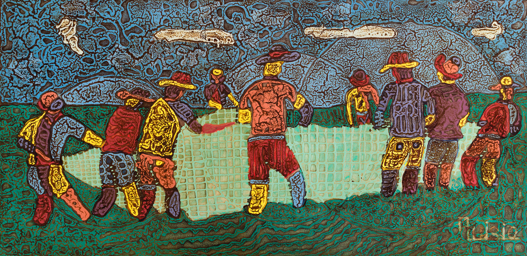 Aluísio dos Santos, Puxando a Rede, 1984 | Foto: Karla Santos | Acervo Pinacoteca de Mauá