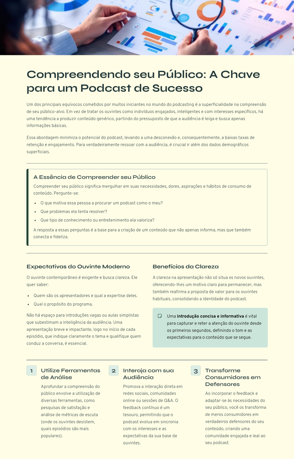 Quer ter acesso a estratégias práticas para tornar seu podcast mais envolvente e profissional? Então te convidamos a conhecer o e-book “Podcast: super dicas para engajar seu público”. (Melhor visualizado em desktop)