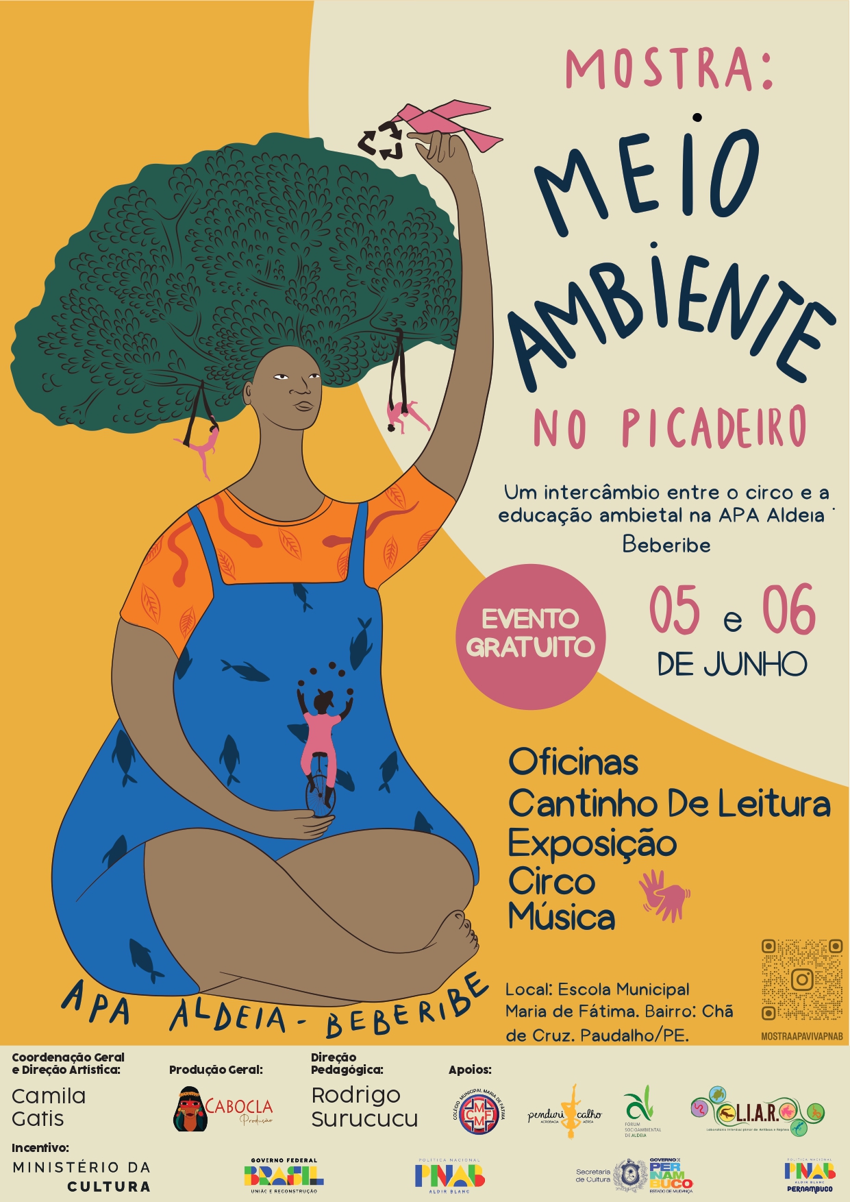 Nos dias 5 e 6 de junho, comemorando a Semana do Meio Ambiente, uma escola cercada por árvores centenárias e hortas comunitárias no bairro rural de Chã de Cruz, em Paudalho, se transformará em um picadeiro a céu aberto para ensinar sobre natureza, ancestralidade e futuro. A Escola Municipal Maria de Fátima será o cenário da “Mostra Meio Ambiente no Picadeiro”, projeto gratuito que integrará oficinas de sustentabilidade, arte circense e educação ambiental para cerca de 1.000 estudantes da rede pública, dos municípios de Paudalho, na Mata Norte; e Camaragibe e Abreu e Lima, na Região Metropolitana do Recife. A ação será realizada dentro da Área de Proteção Ambiental (APA) Aldeia-Beberibe, uma das mais relevantes unidades de conservação de uso sustentável de Pernambuco.